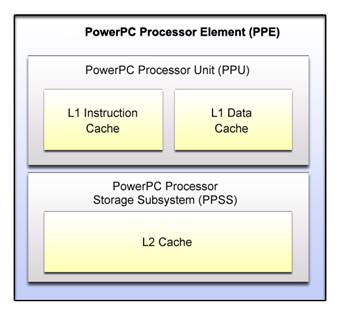 The PPU is the processing unit in the PPE. It is equipped with the 64bit PowerPC architecture instruction set. It also includes a primary cache comprised of a 32KB instruction cache and a 32KB data cache.